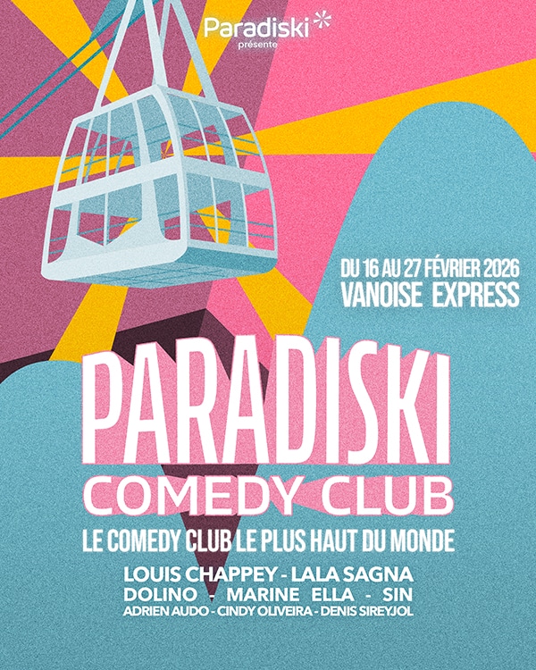This winter, Paradiski has a breathtaking and unprecedented experience in store for you: the world's highest stand-up ! During the February holidays, humor takes to the skies with the Paradiski Comedy Club, in collaboration with the famous Metro Comedy Club, a reference in urban stand-up comedy on the Paris metro.